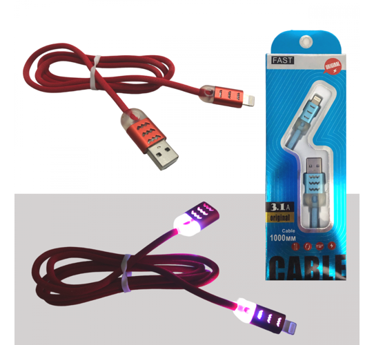 Cabo de dados Lightning IOS 3.1A com LED CBO-8057-IOS