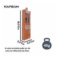 Cabo de dados TIPO-C 3.1A Turbo 2 Metros Kapbom KAP-350-TIPO-C