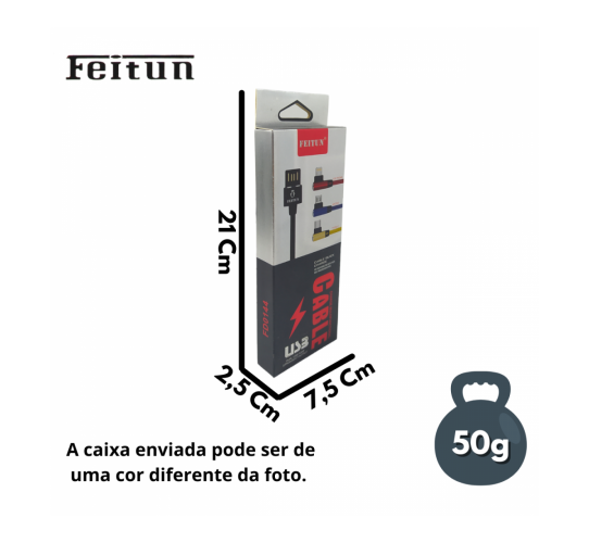 Cabo de dados Lightning IOS Conexão 90º FEITUN Cabo 90º IOS