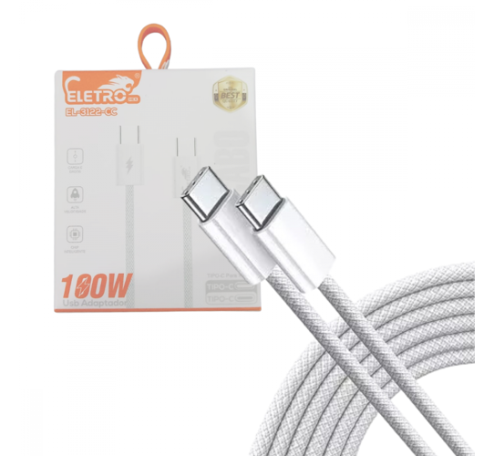 Cabo de dados TIPO-C / TIPO-C 100W Linha Premium de 1 Metro Eletromex EL-3122-CC