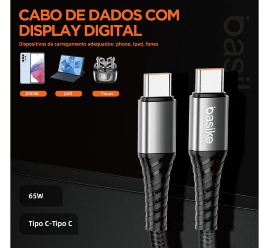 Cabo de dados Tipo C / Tipo C 65W 1 Metro BASIKE BA-CBO106