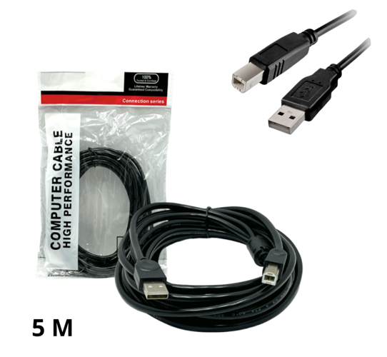 Cabo de Impressora Universal USB de 5 Metros AM+BM com Filtro contra Interferências CBO-3206