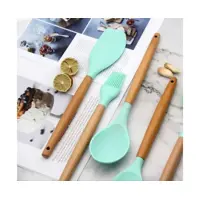 Jogo De 12 Talheres Silicone Utensílios Cozinha Cabo Madeira