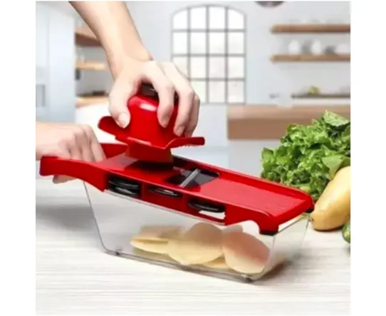 O Mandoline Slicer é extremamente prático e útil em todos os momentos, facilitando a preparação dos alimentos e o seu armazenamento! O utensílio possui compartimentos para preservar as lâminas que não estão sendo utilizadas, evitando que se percam ou se dispersem. @@- Eficiente @- Prático @- Fácil de lavar @- Várias opções de uso @- Lâmina de alta qualidade @@O pacote inclui: @2 lâminas de corte - 1,2 mm, 2,2 mm @2 lâminas estilo "Julienne" - 2,5 mm, 3,5 mm @1 Lâmina estilo Grelhada @1 ralador @1 descascado @1 contêiner @1 cortador com protetor de mão @1 Rack de armazenamento seguro